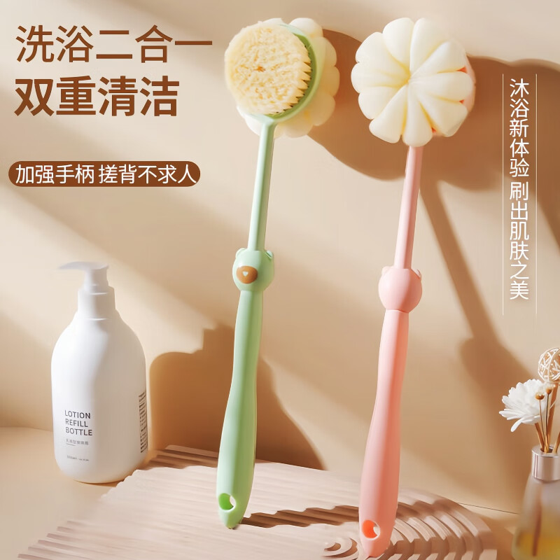 加仕高洗澡搓澡刷搓背神器不求人长柄软毛刷子双面两用擦背沐浴刷粉色