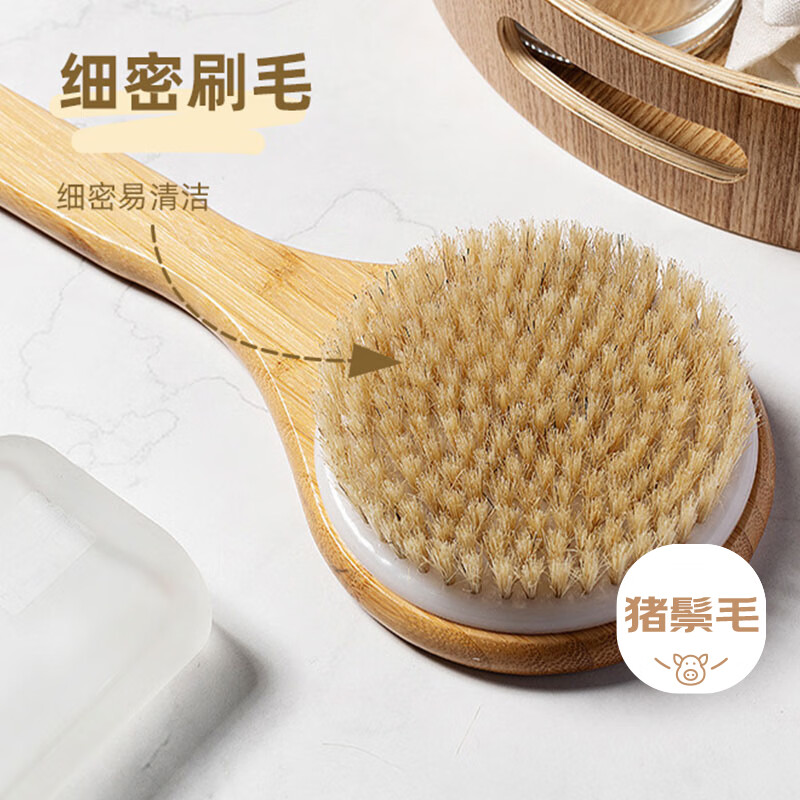 HOUYA猪鬃毛洗澡刷 沐浴刷身体搓后背搓泥去角质 搓澡长柄刷子