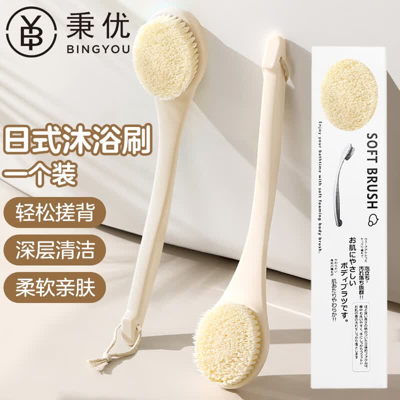 秉优 精品弯柄日本洗澡刷子 日式长柄软毛护肤沐浴刷洗浴搓澡搓背刷